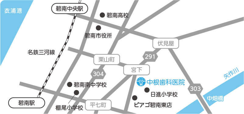 愛知県碧南市の中根歯科医院では、一般歯科や小児歯科、予防歯科をはじめインプラントや義歯(入れ歯)や審美歯科やホワイトニングなど、お口のお悩みに合わせた治療に取り組んでいます。飛沫対策として全ての歯科ユニットに口腔外バキュームを設置し、安全安心な治療に努めております。